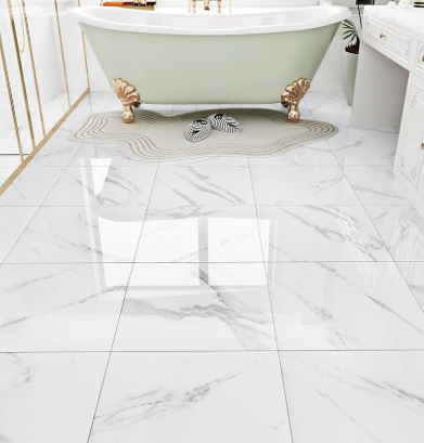 Glossy Marble White bathroom tiles bring luxury and brightness to bathroom interiors. Featuring elegant marble veining with a high-gloss finish, these tiles reflect light beautifully and create a spacious, premium feel. Perfect for modern bathrooms, feature walls, and vanity backdrops.