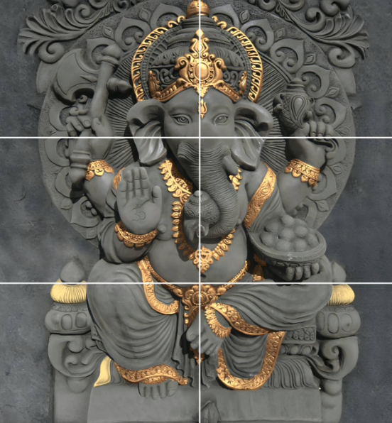 This exquisitely crafted stone Ganesha sculpture reflects divine artistry and timeless tradition. Carved with intricate detailing and enhanced with elegant gold highlights, the sculpture symbolizes wisdom, prosperity, and protection. The fine textures, balanced proportions, and graceful posture make it a perfect choice for temples, entrances, meditation spaces, and luxury interiors.