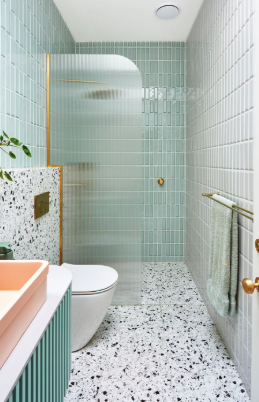 Modern terrazzo-style bathroom tiles for fresh and stylish interiors.